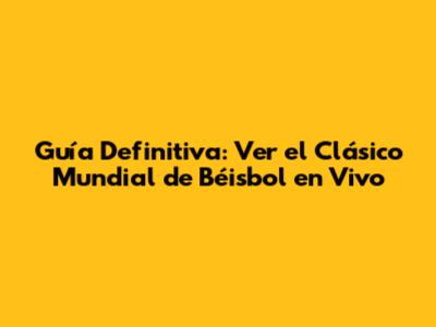 Guía Definitiva: Ver El Clásico Mundial De Béisbol En Vivo
