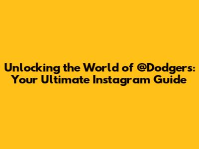 Unlocking The World Of @Dodgers: Your Ultimate Instagram Guide